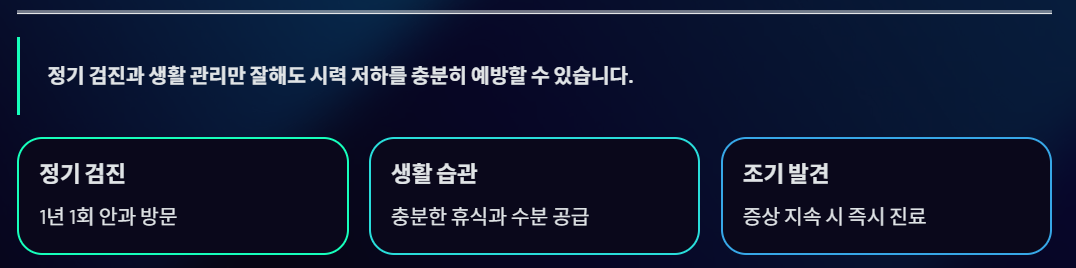 정기 검진과 생활 관리만 잘해도 시력 저하를 충분히 예방할 수 있다.