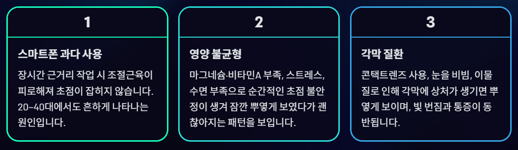 → 초점이 순간적으로 흐려지고 뿌옇게 보임