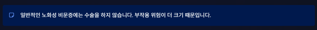 하지만 일반적인 노화성 비문증에는 수술을 하지 않는다. 부작용 위험이 더 크기 때문이다.