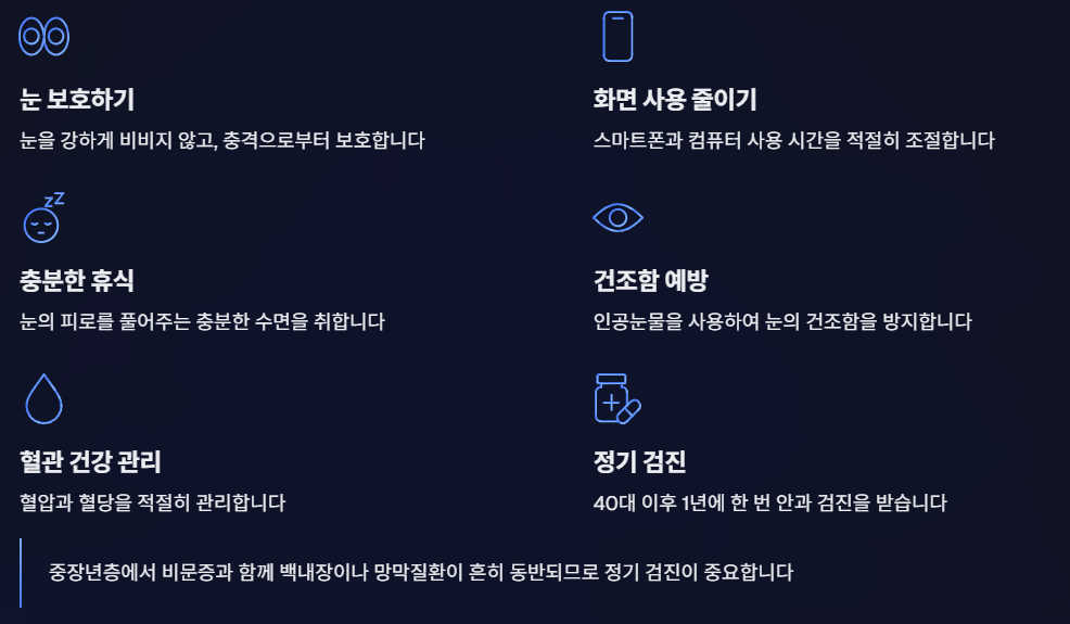 정기적인 안과 검진과 생활관리만 잘해도 건강한 시력을 오래 지킬 수 있다.