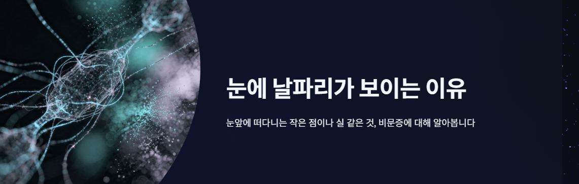 눈앞에 작은 점, 실, 벌레 같은 것이 떠다니는 것처럼 보이는 증상을 비문증(飛蚊症)이라고 한다. 흔히 “눈에 날파리가 보인다”, “검은 점이 따라다닌다”라고 표현하며 40대 이후 중장년층에서 특히 많이 호소한다.