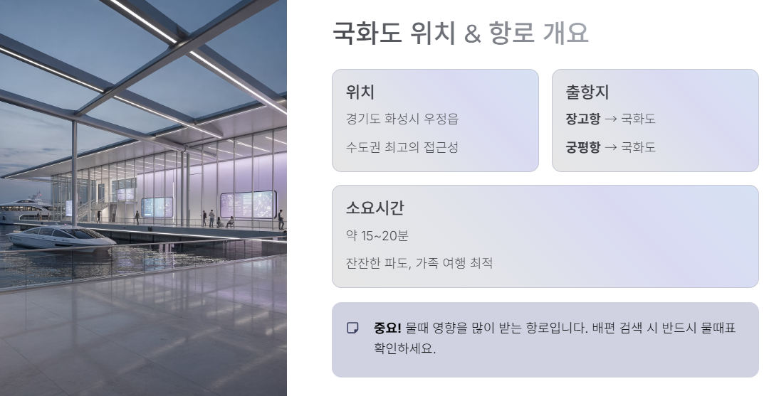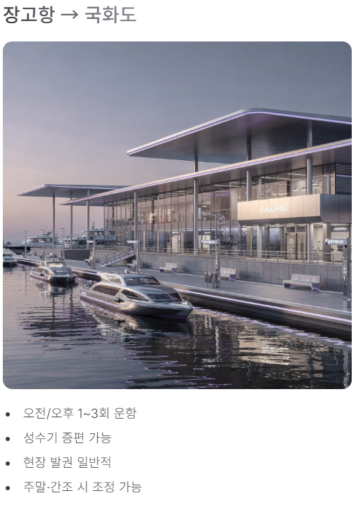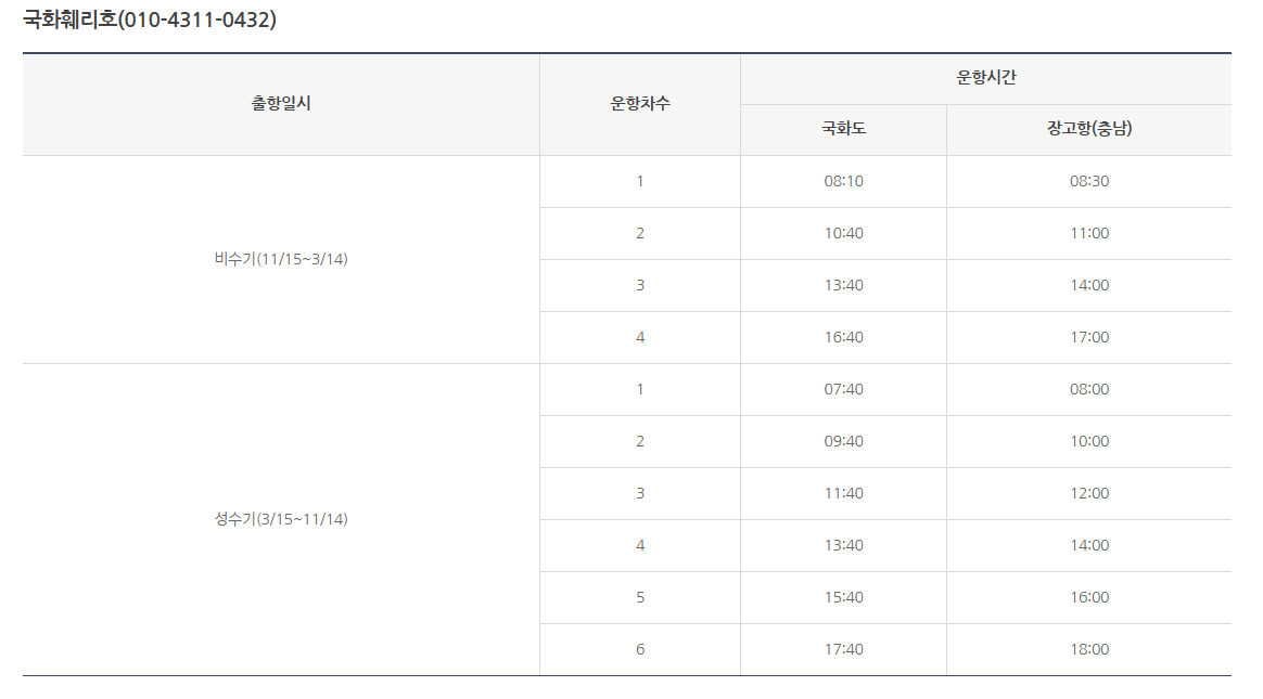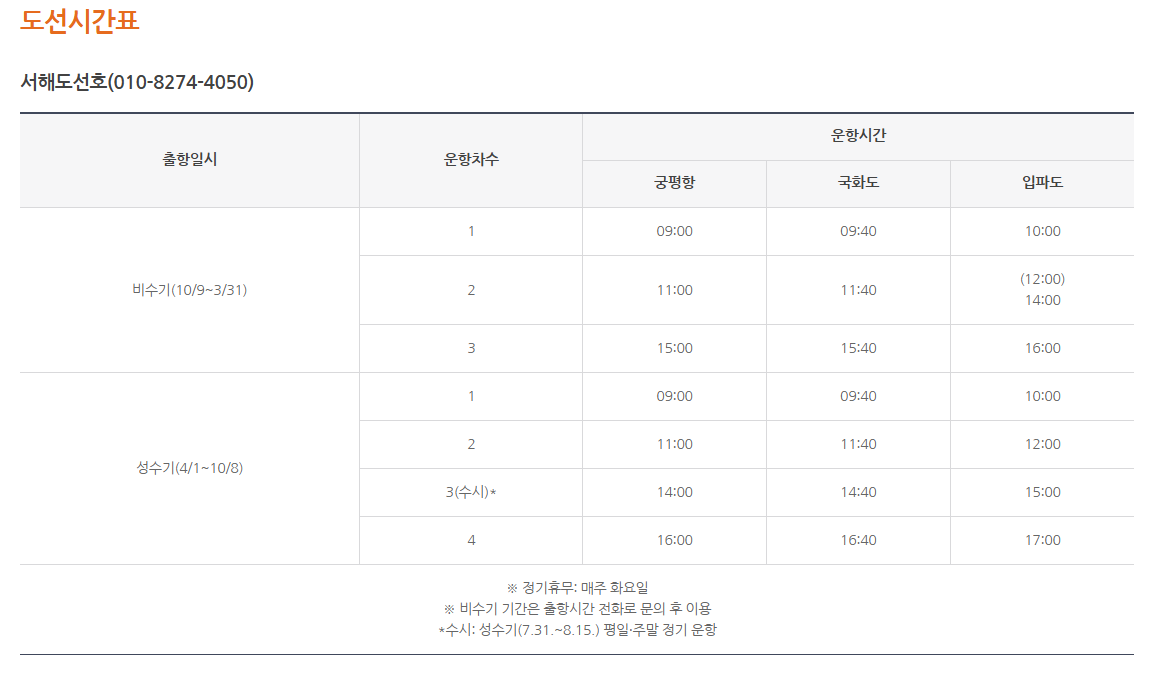- 주말 및 물때 간조 시 운항 조정될 수 있음