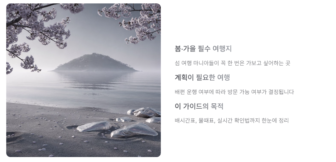 배편 정보는 계절·날씨·물때에 따라 변경되므로 실시간 확인 권장.