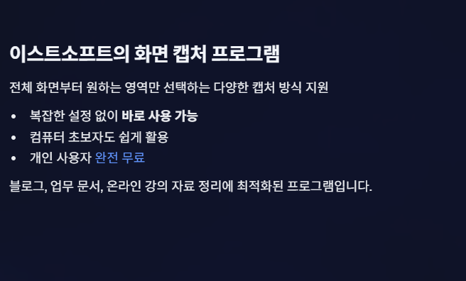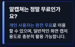 개인 사용자는 무료로 이용할 수 있으며, 일반적인 화면 캡처 용도로 충분히 활용 가능합니다.