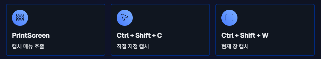 - PrintScreen : 캡처 메뉴 호출