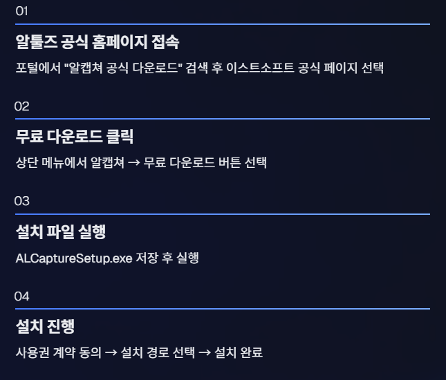 이번 글에서는 처음 사용하는 분들도 이해하기 쉽도록 알캡쳐 무료 다운로드 방법부터 공식 설치 순서, 설치 후 바로 사용할 수 있는 기본 사용법까지 차근차근 정리해 드리겠습니다.
