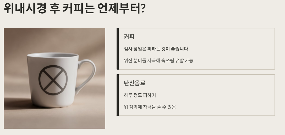 ✔️ 검사 당일: 커피·술·자극적인 음식 피하기