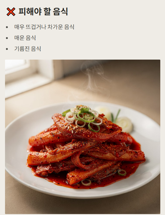 - 매우 뜨겁거나 차가운 음식