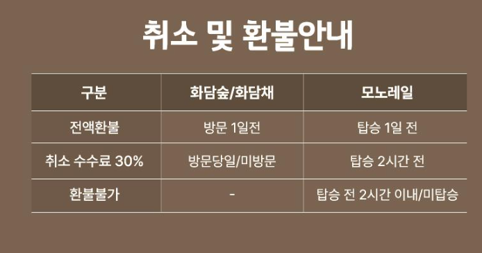 화담숲 예약 취소 및 환불 기한은 전날 12시 전입니다. 그러다 보니 가시기 바로 전날이 취소표가 가장 많이 나옵니다.