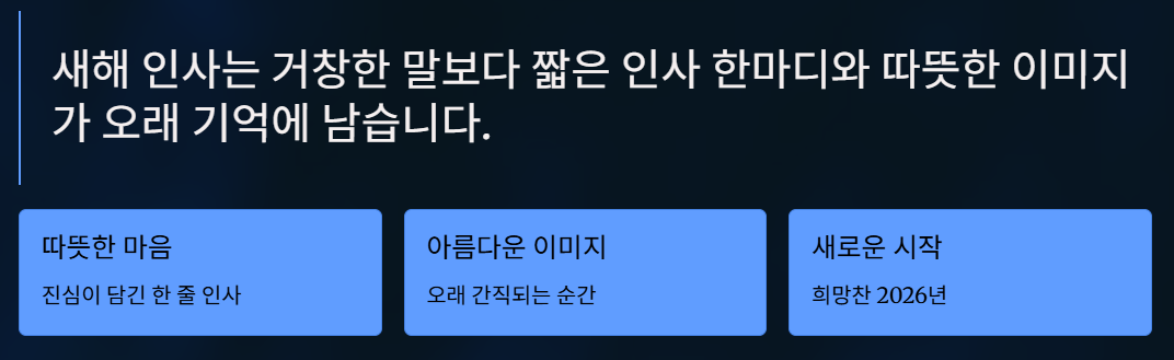 요즘은 길게 적은 글보다 이미지 하나와 짧은 인사말로 새해 마음을 전하는 분들이 많습니다. 간단하지만 정성이 느껴지는 인사 방법을 참고해 보세요.