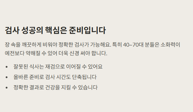 - 준비를 철저히 하면 장 상태가 깨끗해져 검사 시간도 짧아지고, 재검할 필요도 줄어듭니다.