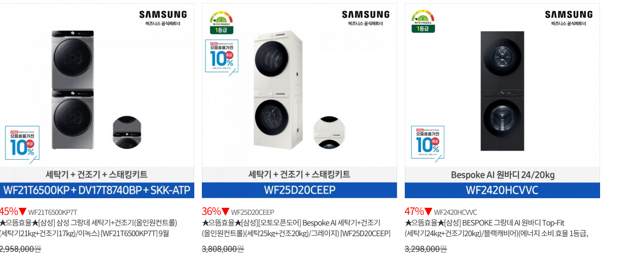 | 가전 | 최대 45% | 무풍 갤러리 에어컨 4도어 냉장고 |