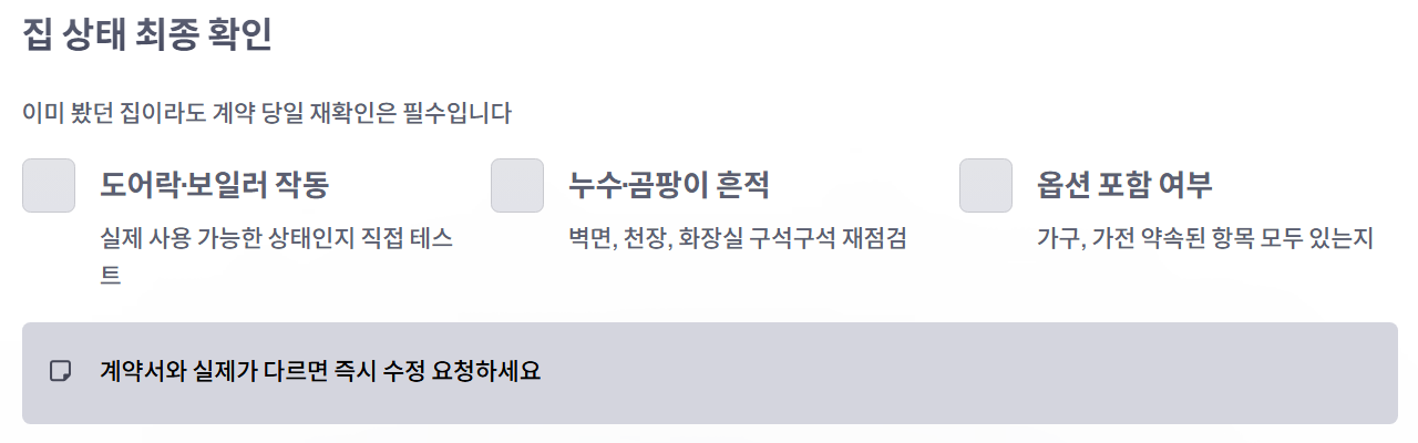 이미 한 번 봤던 집이라도 계약 당일에는 다시 확인하는 것이 좋습니다.