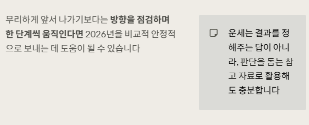 => 말띠에게는 ‘움직일 수 있는 해’이면서 동시에 ‘방향 설정이 중요한 해’로 볼 수 있습니다.