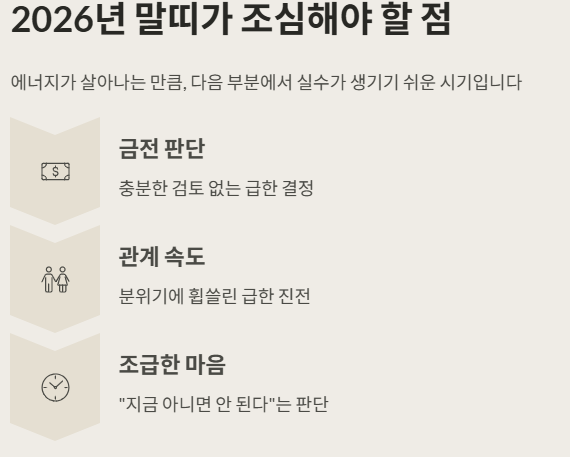 정리하면, 2026년 말띠 운세의 핵심은 ‘움직임 속의 균형’입니다.
