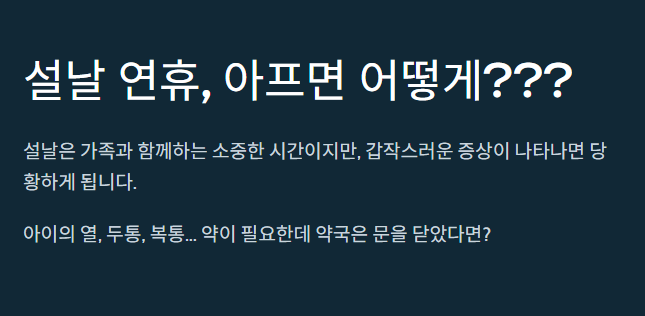 막상 연휴 중에 갑자기 약이 필요해지는 상황이 생기면 당황하기 쉽습니다.