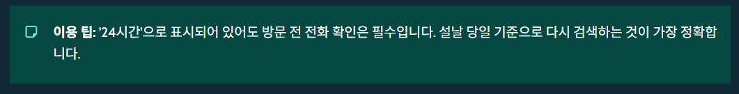 => 방문 전 전화 확인은 필수 - 설날 당일 기준으로 다시 검색하는 것이 가장 정확