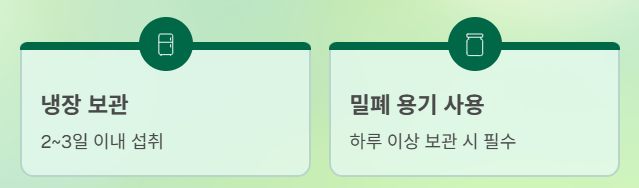 - 냉장 보관 시 2~3일 이내 섭취 권장