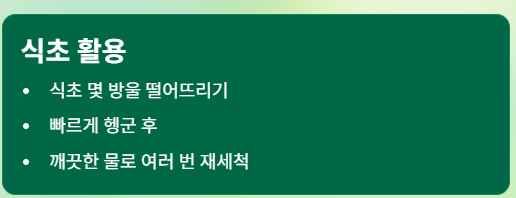 - 식초 몇 방울 떨어뜨려 빠르게 헹군 후