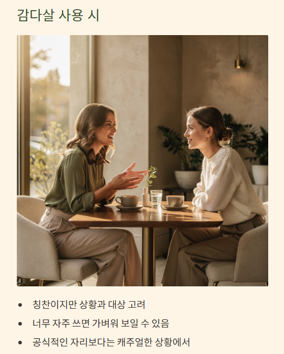 - 감다살: 칭찬이지만 상황과 대상 고려 필요