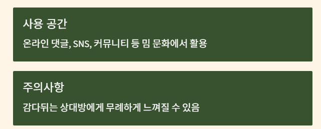 뜻을 알고 나면 댓글의 뉘앙스를 훨씬 정확하게 이해할 수 있습니다.