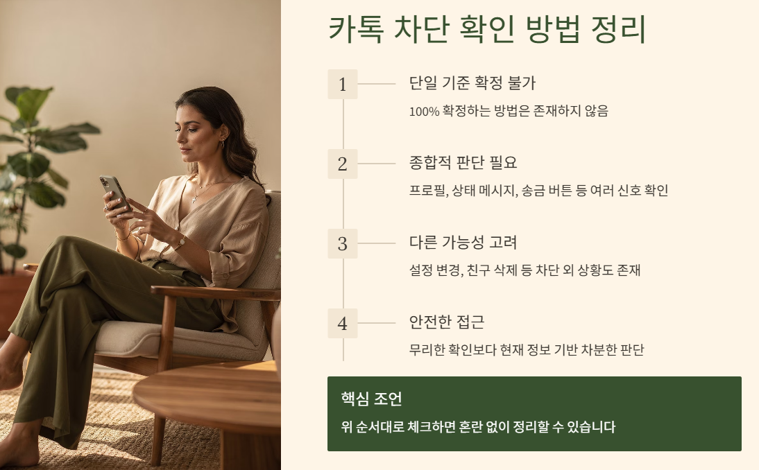 정리하면, 카톡 차단 확인 방법은 단일 기준으로 확정할 수는 없습니다.