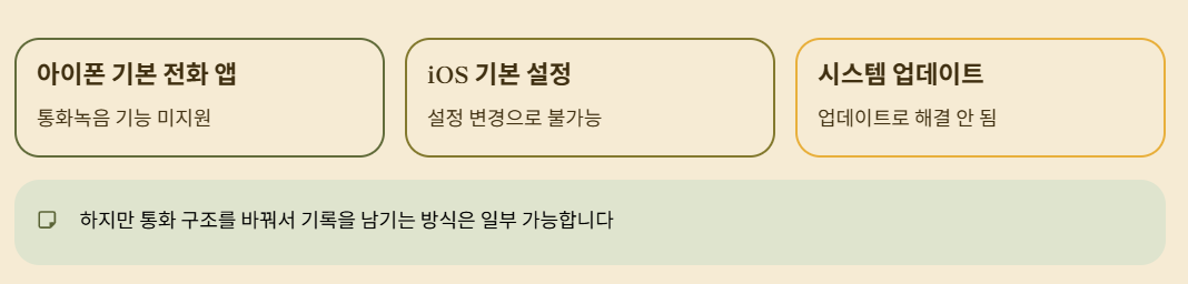 결론부터 말하면, 아이폰은 기본 통화녹음 기능을 지원하지 않습니다.
