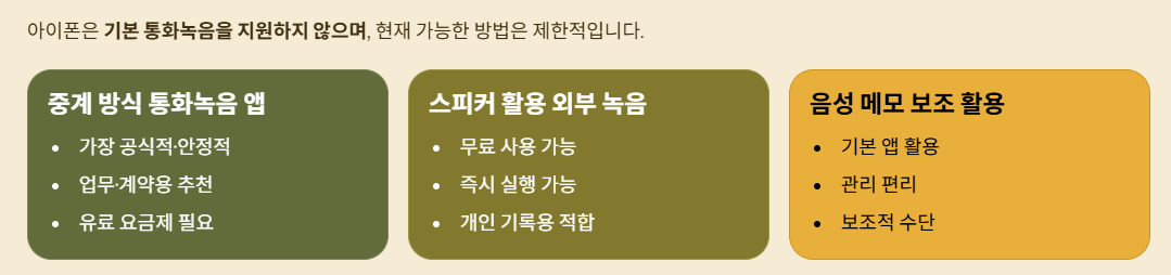 아이폰 통화녹음은 방식에 따라 비용과 편의성 차이가 큽니다.