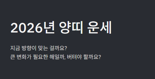2026년 운세를 검색하는 분들 중 양띠는 유독 이런 고민이 많습니다.