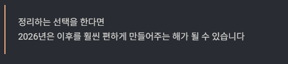 2026년은 이후를 훨씬 편하게 만들어주는 해가 될 수 있습니다.