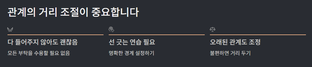 => 이럴수록 중요한 건 관계의 거리 조절입니다.