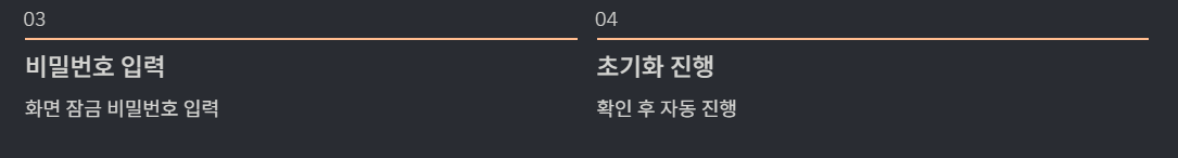 초기화를 하면 사진, 연락처, 앱 데이터가 모두 삭제됩니다. 복구가 필요하다면 반드시 백업부터 해야 합니다.