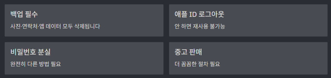 이 과정을 거치지 않으면 초기화 후에도 기기 잠금(Activation Lock) 이 걸릴 수 있습니다.