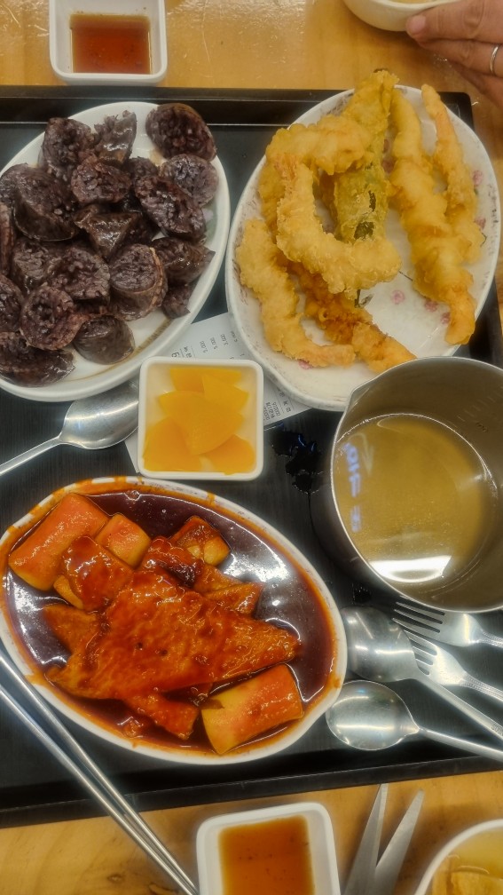 튀김과 떡볶이 그리고 어묵은 정말 최정 조합이었습니다. 찐득한 떡볶이 소스에 오동통한 두꺼운 어묵! 그리고 바삭하면서도 담백했던 튀김 예술입니다. 떡볶이 소스에 국물도 많네요. 저 국물에 튀김을 쏙 찍먹하고 나면 어머! 감탄사가 그대로 나옵니다.