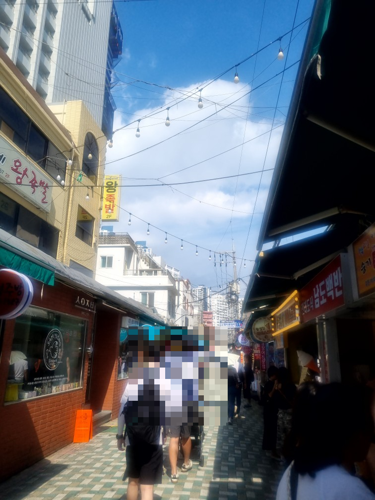 상국이네는 해운대 시장의 끝쪽에 있습니다. 해운대역에서 해운대로 가는 길 사이의 왼쪽 골목으로 튀김과 떡볶이 매장이 시작되는 시장길이 있습니다. 들어가면 바로 씨앗 호떡도 팔고 있고 왼쪽에는 형제 국밥집도 맛있겠다 싶은 곳이 있었습니다.