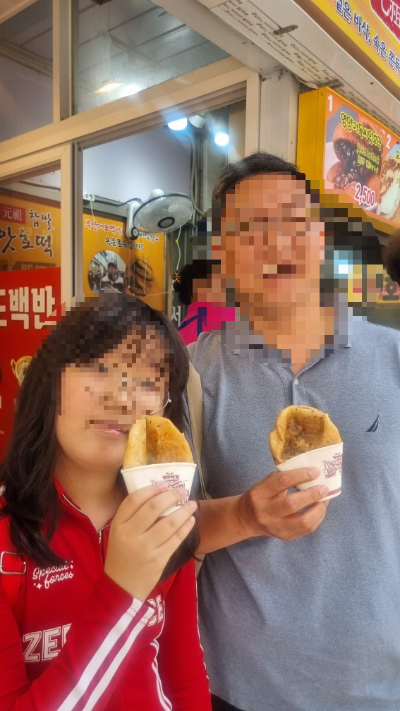떡볶이를 먹은 뒤 그 배부른 상태에서도 씨앗 호떡을 또 사먹었습니다.