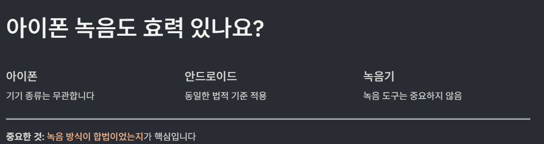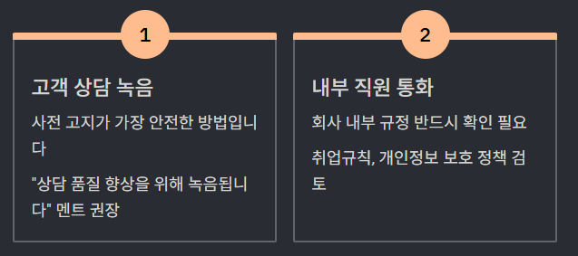 - 녹음 자체는 합법이어도 사용 방식에 따라 문제 발생 가능