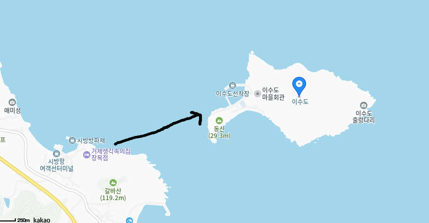 이수도는 경상남도 거제시 장목면에 위치한 작은 섬입니다.