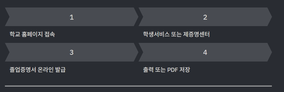 → ‘민원 신청’ → ‘제증명 발급’ → ‘졸업증명서’ 검색