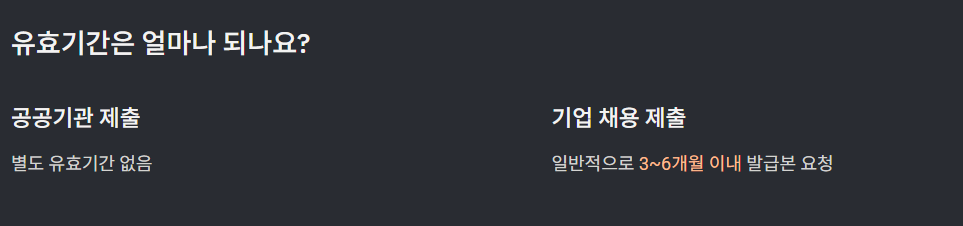 - 기업 채용 제출: 일반적으로 3~6개월 이내 발급본 요청이 많음