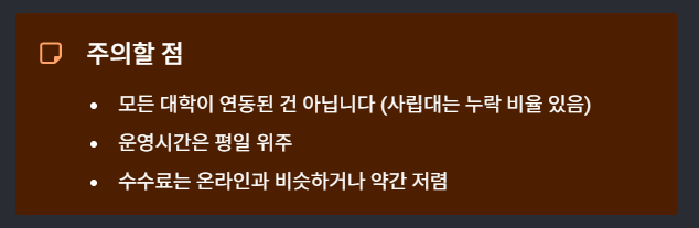 ⮕ 단점: 회원로그인 필요, 수수료가 더 높은 학교도 있음