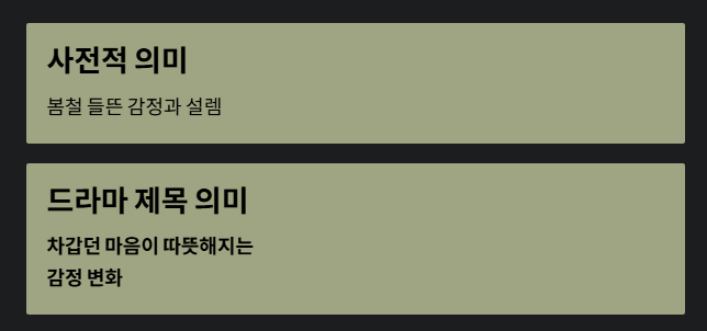 - 드라마를 보지 않아도 제목과 감정 메시지 이해 가능