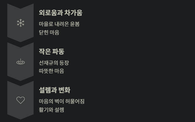 - 차갑던 마음이 따뜻한 설렘으로 변화