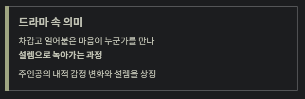 ✔ 드라마 제목 의미: 차갑던 마음이 따뜻해지는 감정 변화