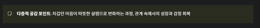 등 다층적 공감 포인트를 제공하고 있습니다.