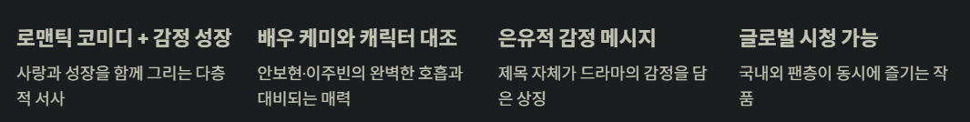 이런 흐름은 단순한 로맨틱 코미디 이상의 감정적 몰입 포인트를 제공합니다.