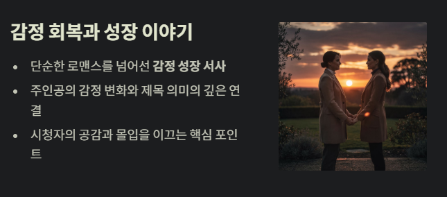 - 시청자는 주인공의 감정 변화와 제목의 의미를 함께 이해하면서 몰입할 수 있습니다.