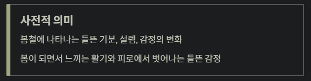 ✔ 사전적 의미: 봄철 들뜬 감정/설렘