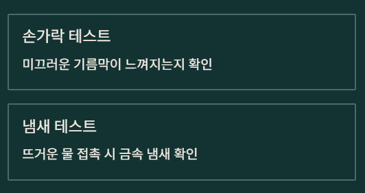 - 뜨거운 물 접촉 시 금속 냄새가 나는지
