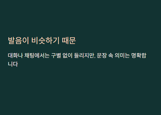 둘 다 비슷하게 들리지만, 문장 속 의미만 보면 명확하게 구별됩니다.